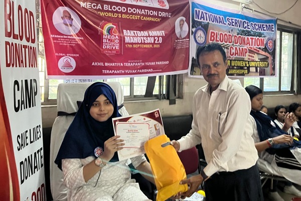 Jamshedpur : जमशेदपुर महिला विश्वविद्यालय में हुआ रक्तदान अमृत महोत्सव 2.0 का आयोजन